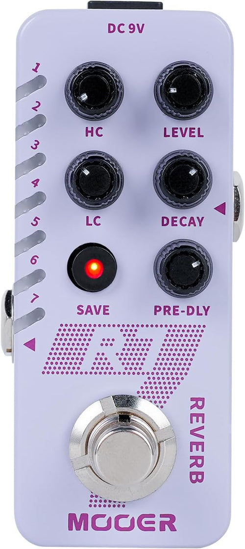 MOOER R7 Guitar Reverb Pedal, 7 Different, Rich and Classic Reverb Types With High Cut, Low Cut, Trail On Function, Buffer Bypass, Storable preset